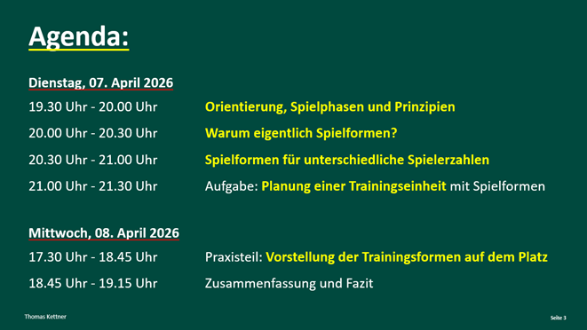 Spielformen im Fußball – Steuerungsmöglichkeiten und ihre Wirkung (Trainerschulung bei der TSG Öhringen am 7. + 8. April 2026)